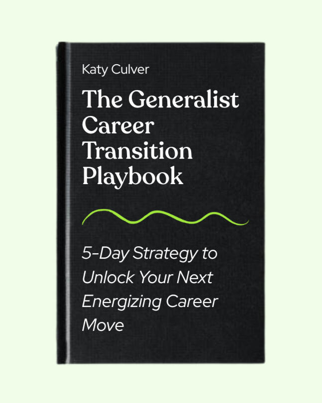 π Hey! Katy here.Thanks for joining The Generalist Career Transition Playbook.Your first email will land in your inbox in the next minute or so.Before you run to your inbox...Take 5 seconds to share where you are in your career journey. Help me create content that serves you best π